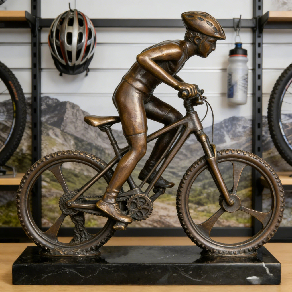 Mountain bikers, cycling fans, outdoor adventurers, athletes, coaches, executives, and décor collectors who value handmade bronze art.