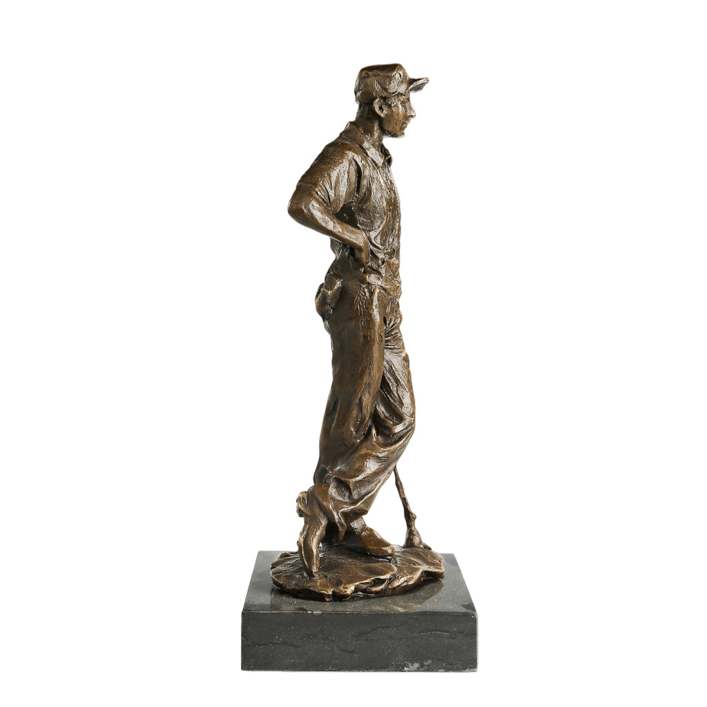 This sculpture captures a poised golfer standing in a relaxed yet confident posture, one leg slightly raised, hand on hip, gripping a golf club. The detailed carving of his golf attire, cap, and accessories reflects casual elegance and the refined aesthetics of the sport.
