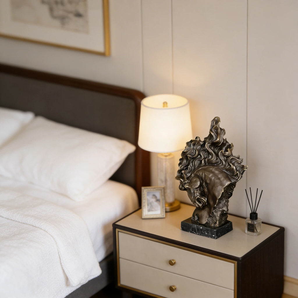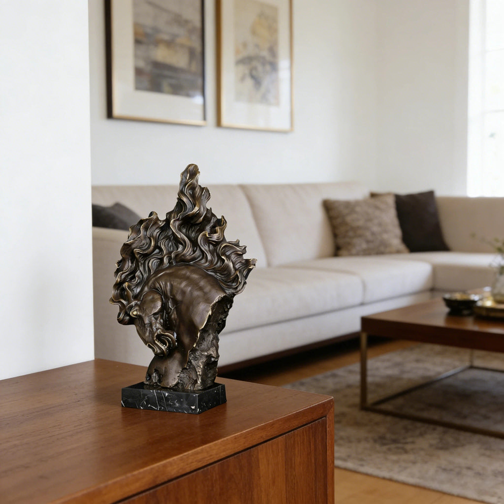 The Flame Mane Horse Head captures raw power and forward motion. Its most striking feature—the mane, sculpted into dynamic, flowing flames—fuses the enduring strength of the horse with the unstoppable energy of fire. This bold, modern piece is more than decor; it's a symbol of passion, progress, and unbridled spirit.