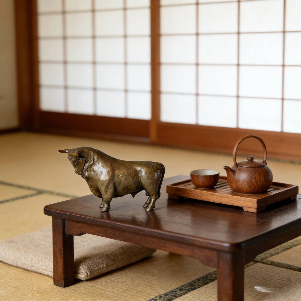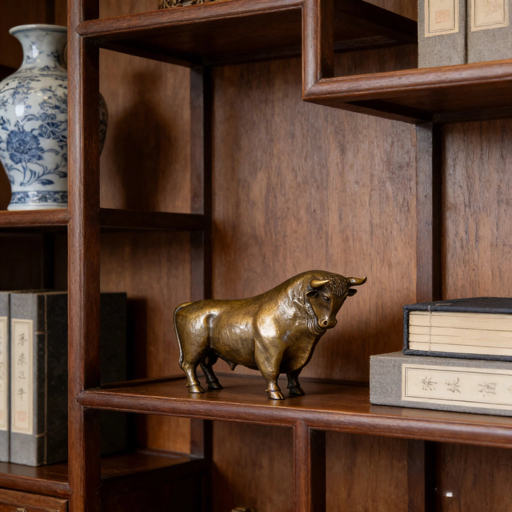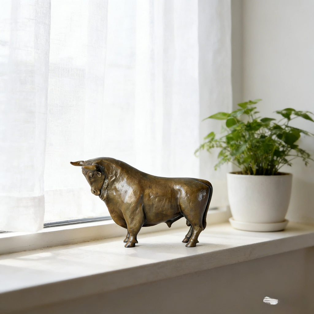 Symbolically, the bull carries strong cross-cultural meaning. In Chinese culture, it represents diligence, perseverance, and wealth attraction; in Western tradition, it is associated with power, prosperity, and financial strength. Combining these values, this sculpture serves as both a refined decorative object and a meaningful symbol of success and resilience.